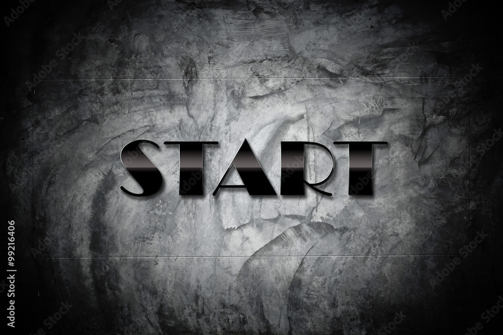 Tableau sur toile Start Concept - Start sign on old cement black wall