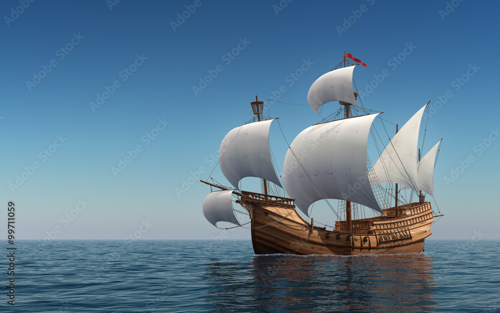 Tableau sur toile Caravel In The Blue Sea
