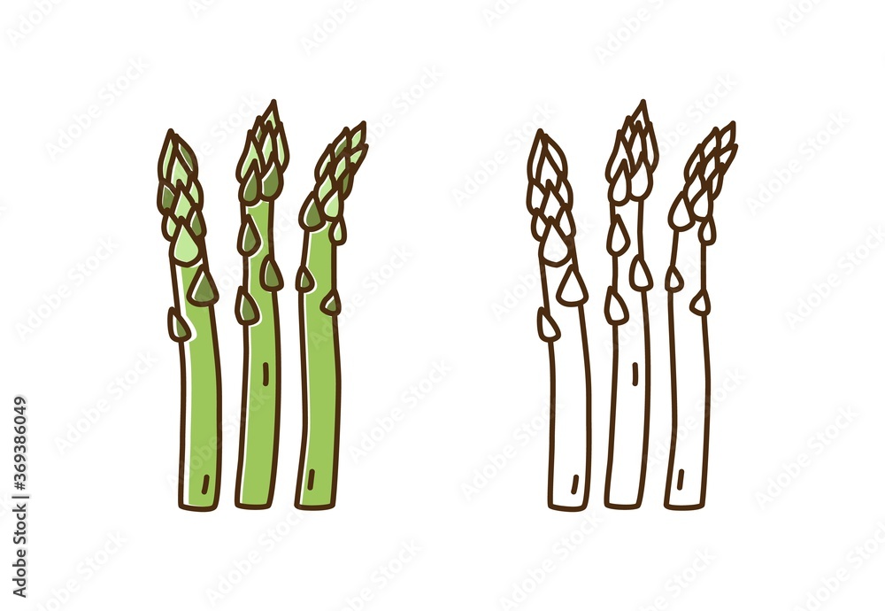 Tableau sur toile Tasty fresh asparagus monochrome and color set vector flat illustration