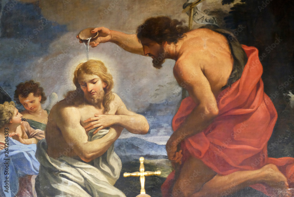 Tableau sur toile The Baptism of Christ in Chapel of St John the Baptist, Basilica di Sant Andrea