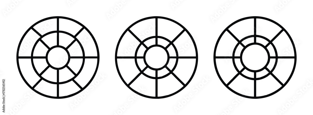 Photos Three black and white oval shapes with internal divisions graphic design vector