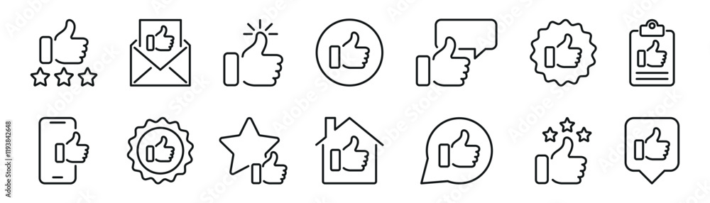 Tableau sur toile Thumb up and like outline icons set