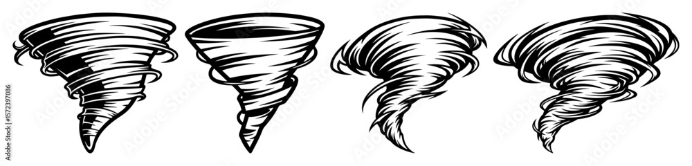 Photos tornado twister cyclone storm vector icon set