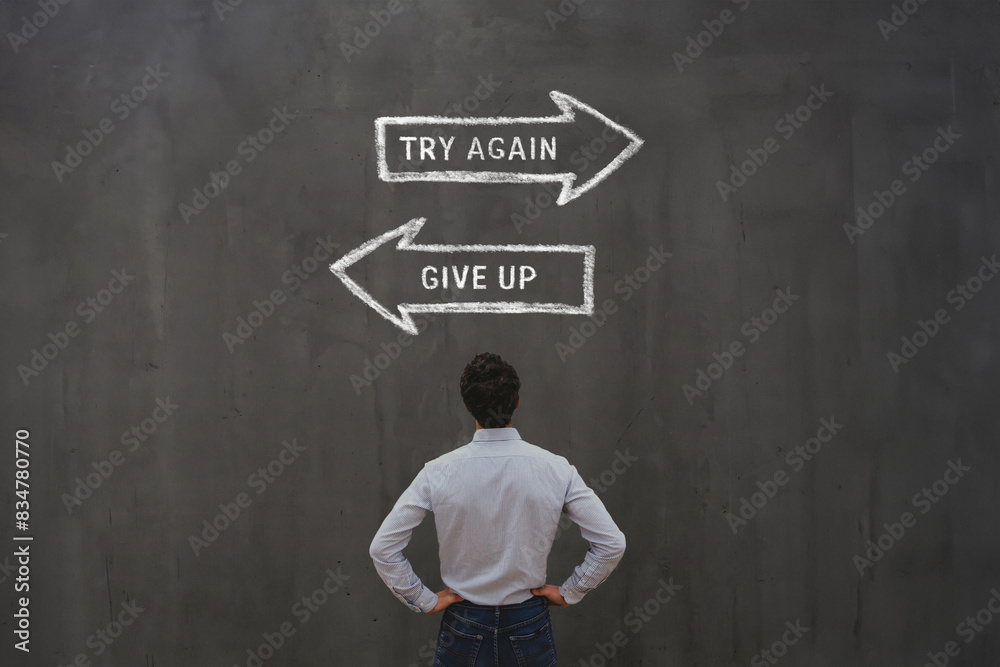 Photos try again or give up, persistence after failure, insistence concept