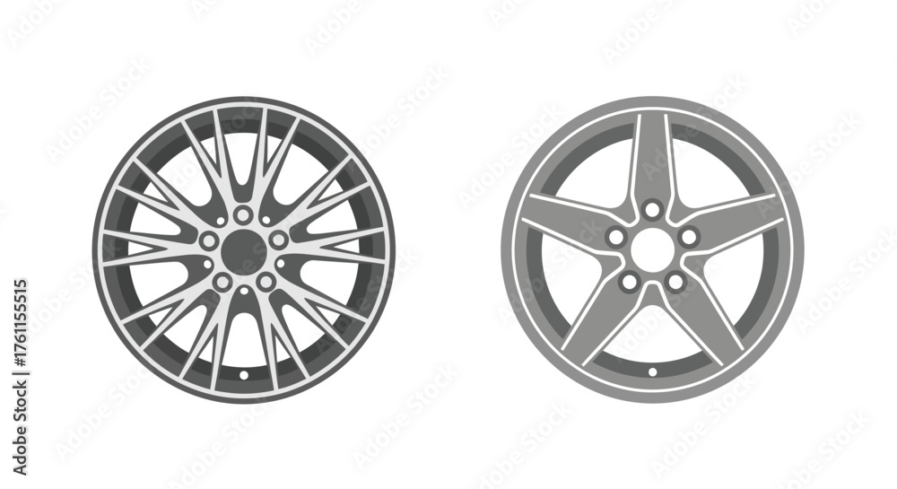 Photos Two automotive wheels depicted in a simple black and white style