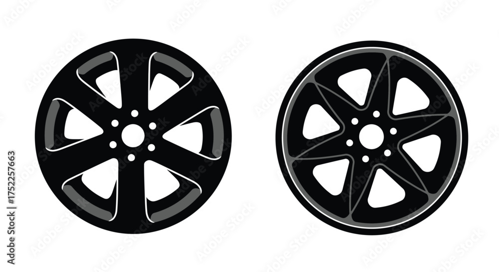 Tableau sur toile Two black alloy wheels displayed on a plain white background image