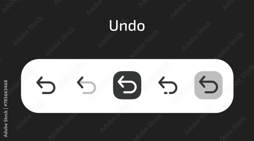 Photos Undo icons in 5 different styles as vector