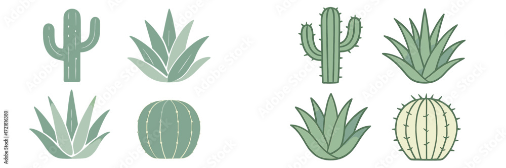Tableau sur toile Various plants arranged in a clean design featuring different types of cacti and