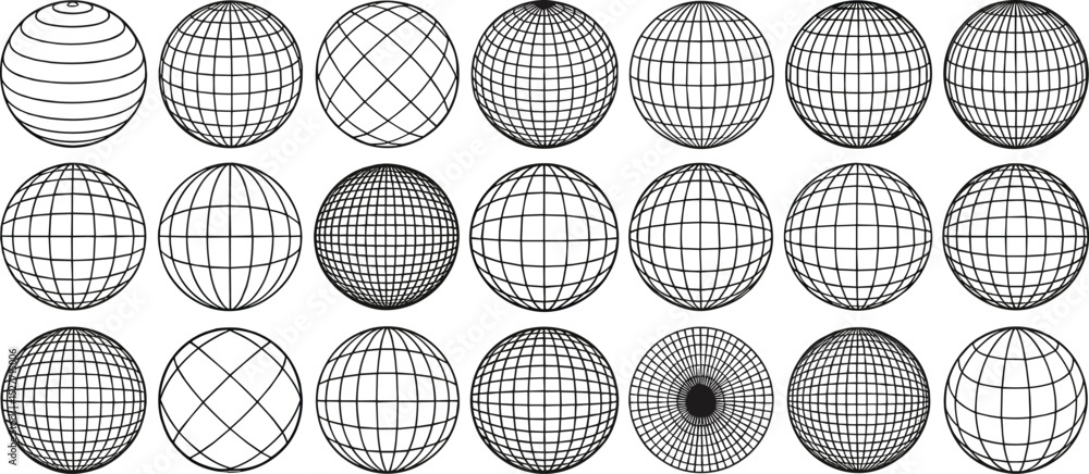 Photos Vector globe wireframe collection, 3D sphere grid illustrations, abstract globe