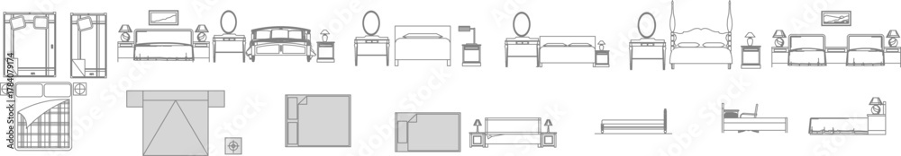 Photos Vector set of bed and nightstand symbols showing top view and elevation for interior design layouts and architectural drawings