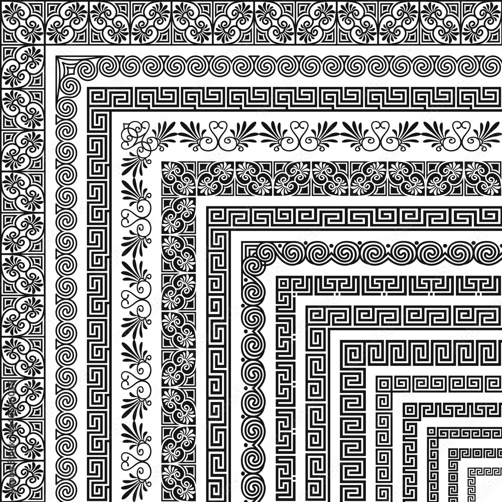Tableau sur toile Vector set of corner brushes with traditional ethnic greek meander pattern