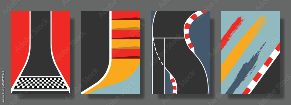 Photos vector set racing background, racing poster, corner, pitstop, race track