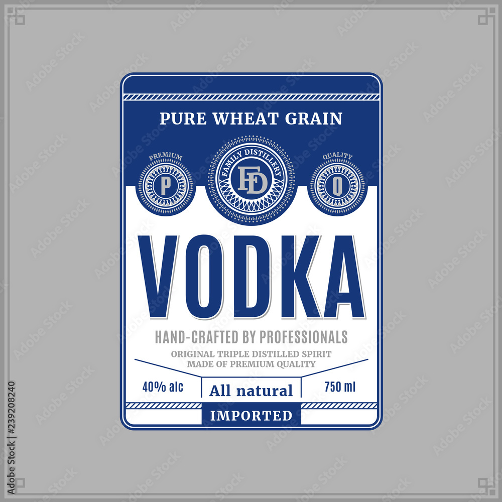 Tableau sur toile Vector white and blue vodka label isolated on a grey background
