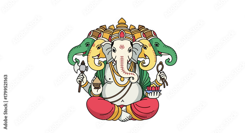 Tableau sur toile Vibrant vector illustration of the Hindu god Ganesha with multiple heads and arm