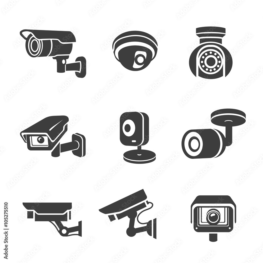 Tableau sur toile Video surveillance security cameras graphic icon pictograms set