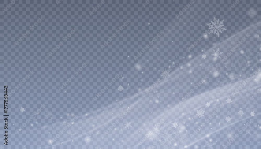 Tableau sur toile Winter background with wavy snow lines and flying snowflakes and a blizzard effect on a transparent background