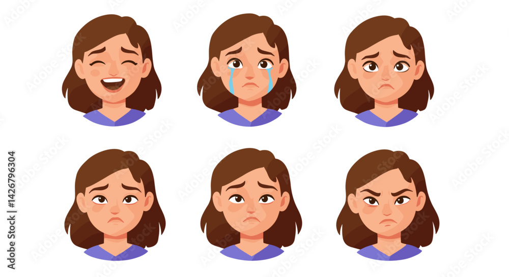 Photos Woman different facial expressions laughing - crying - frowning - angry colored