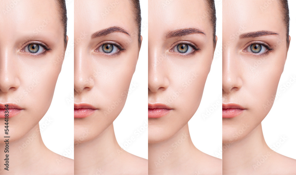 Tableau sur toile Woman with bald eyebrows chooses the shape of the eyebrows.