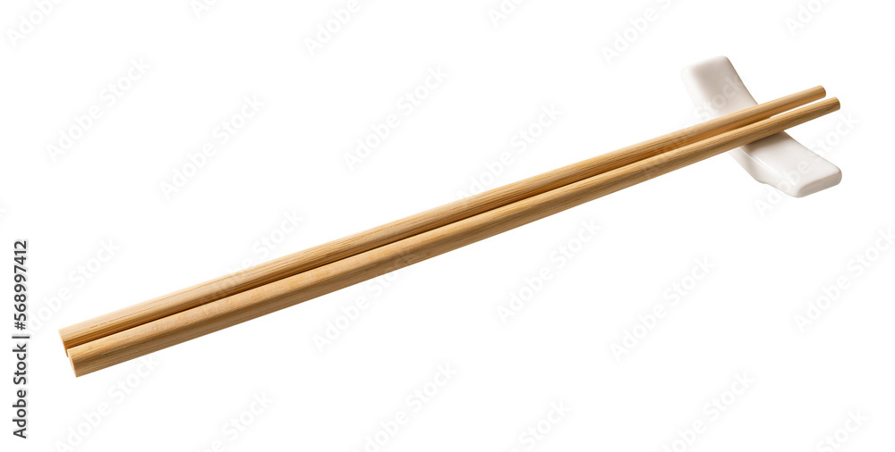 Photos Wooden chopsticks on a white chopstick rest cutout