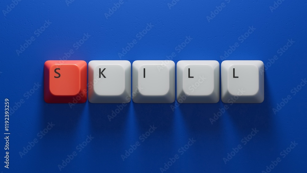 Photos Word skill, Wooden small Computer keyboard keys with letters with copy space available
