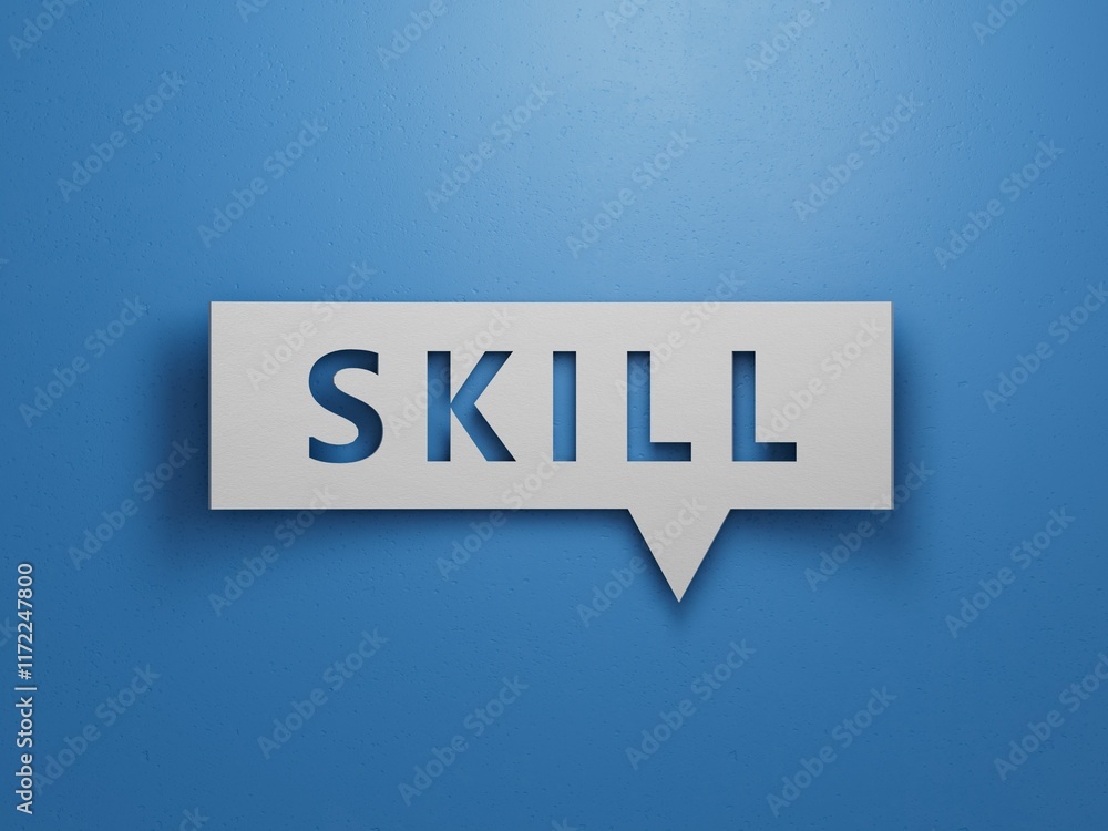 Photos Word skill, Wooden small cubes with letters with copy space available