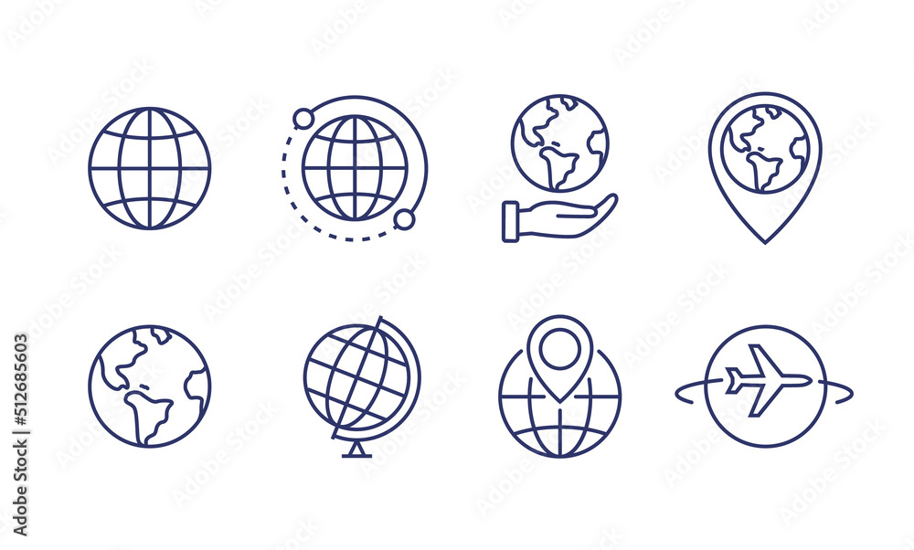 Photos World globe line icon