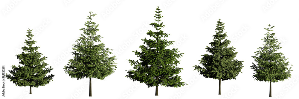 Photos young conifer trees, set of beautiful plants, isolated on transparent background